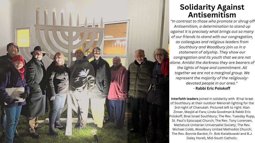 White Supremacist hate groups have been distributing literature in Southbury and Woodbury, CT. Recently, racist propaganda was distributed door to door in a Southbury neighborhood. I organized local clergy to publish a response in the local paper and I was interviewed by a local T.V. news program about the response.